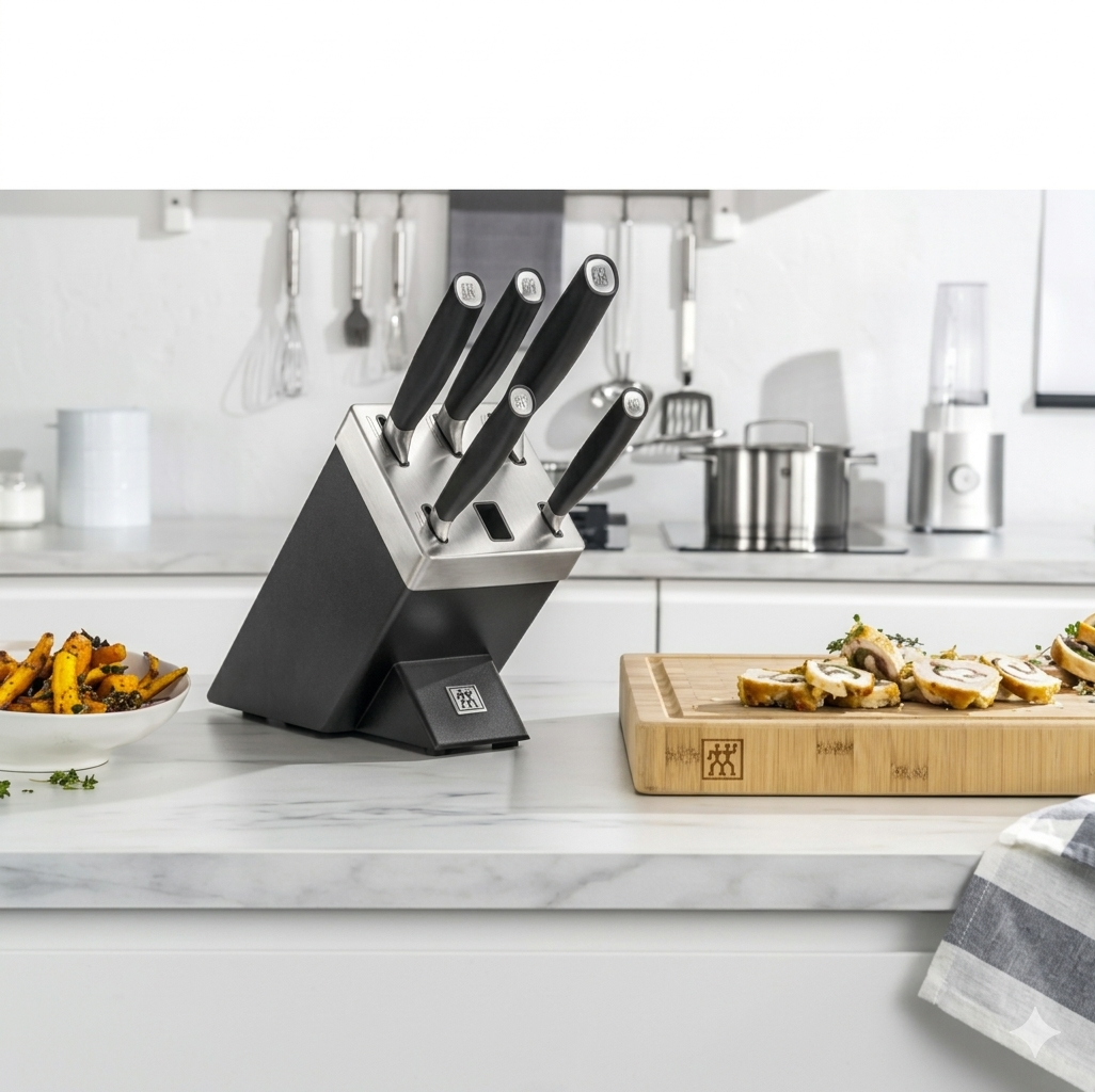 Sé el primero en valorar “Zwilling – ALL * STAR Juego de 5 Cuchillos Plateados con Bloque Autoafilador”